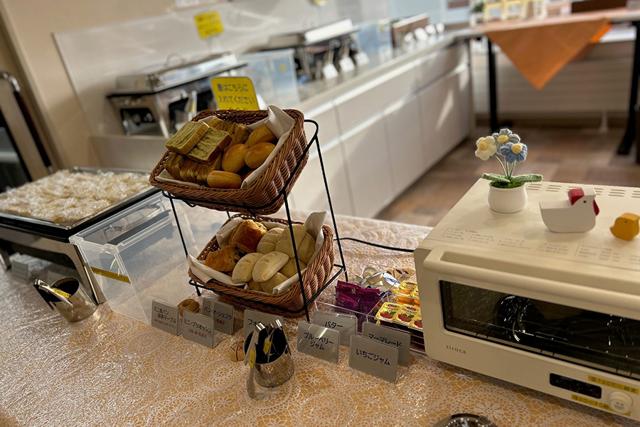 また、週2回の朝食ビュッフェではおにぎりやお茶漬けの提供、数種類のパンやサラダバーなどもご用意しております。
