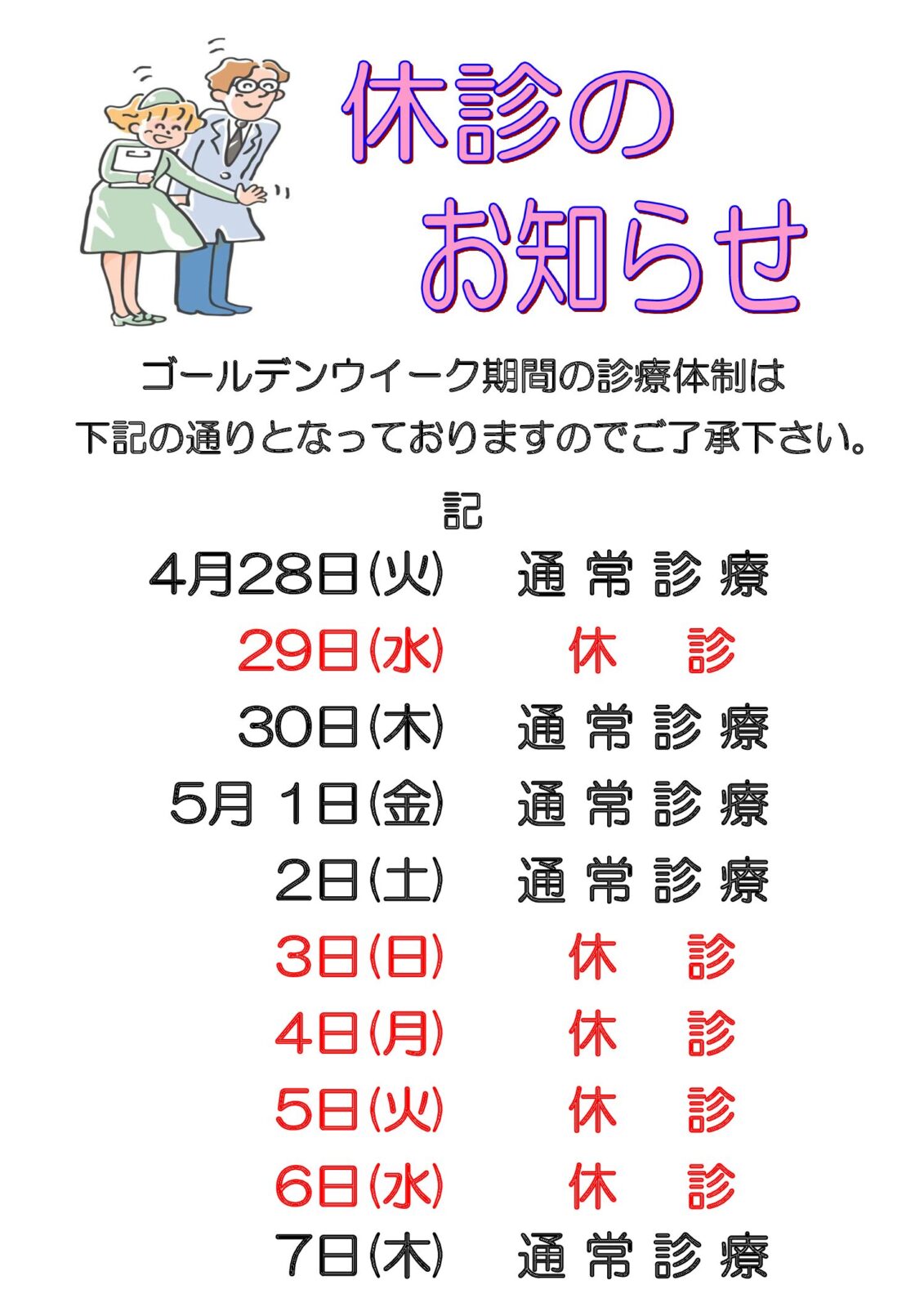 GW外来休診のお知らせ